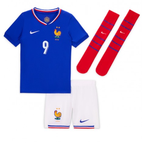 Frankrijk Olivier Giroud #9 Thuis tenue Kids EK 2024 Korte Mouw (+ Korte broeken)